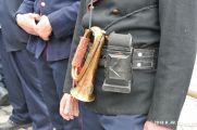 In diesem Jahr ertönte allerdings nicht wie üblich die Sirene zur Eröffnung der Feuerwehrübung. Die Gäste auf dem Marktplatz erwartete eine realitätsnahe Alarmierung wie sie schon vor hunderten Jahren in Eisfeld üblich war. Der Turmbläser auf dem Schloßturm verkündete mit seiner Fanfare ein Feuer. Die Alarmierungskette nimmt nun seinen Lauf. Die Trommler alarmieren die Löschmannschaften im Stadtgebiet, ebenso wird die Alarmkanone am Stelzener Berg in Stellung gebracht. (Hier "dargestellt" von der Stadtwache mit ihren neuen Gewehren) Ein Schuss-Überland (Coburg,Sonneberg,Hildburghausen) Zwei Schüsse-Umland (Harras, Waffenrod, Brünn, Lautertal) Drei Schüsse-In der Stadt brennt es !!!
