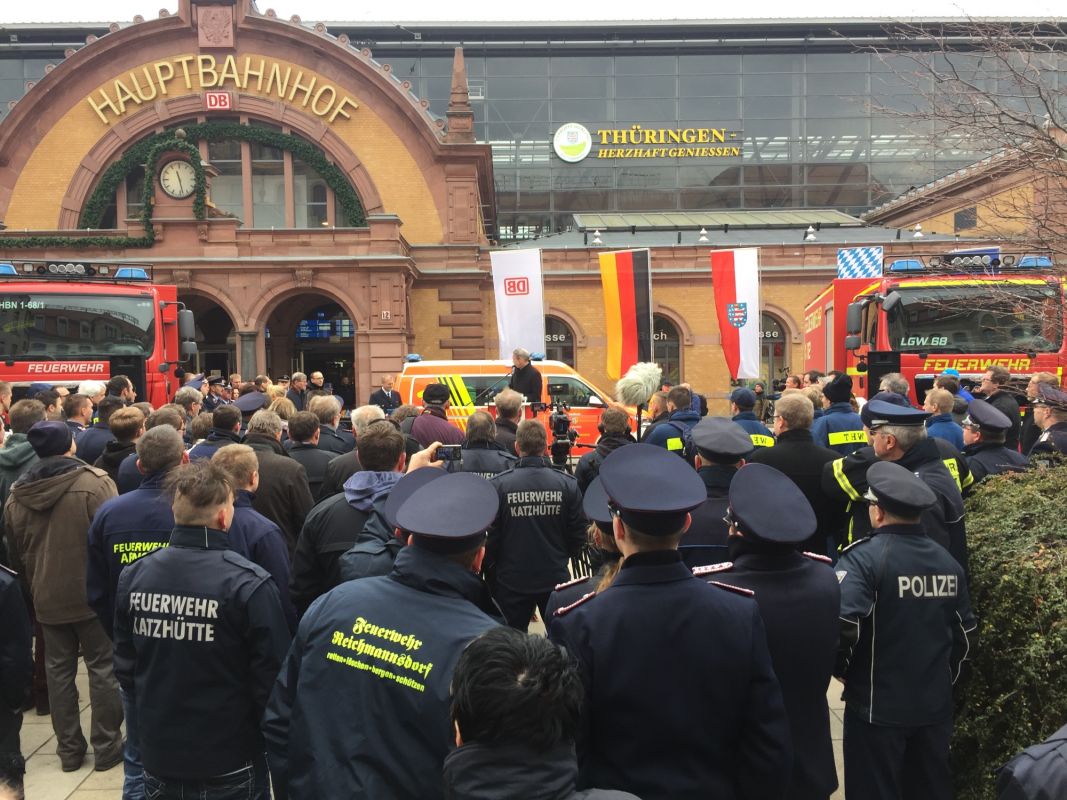 Am Samstag den 11.11.17 trafen sich die Abteilungen der Tunnelbasiseinheiten aus Thüringen und Bayern zusammen mit Vertretern aus Politik und Deutscher Bahn auf dem Vorplatz des Erfurter Hauptbahnhofes um die 8 Sonderfahrzeuge ihrer Bestimmung zu übergeben.