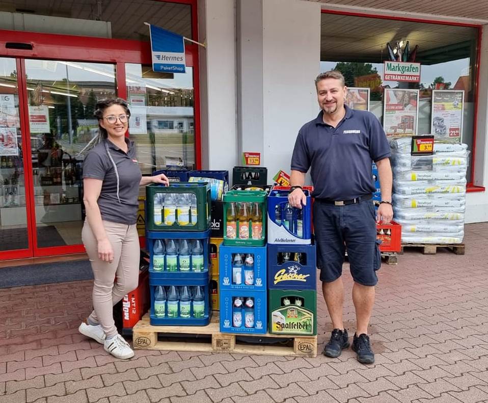 Wir bedanken uns bei Stephanie Wölfel vom Markgrafen-Markt in Eisfeld für eine großzügige Spende von Getränken für unsere Feuerwehren.