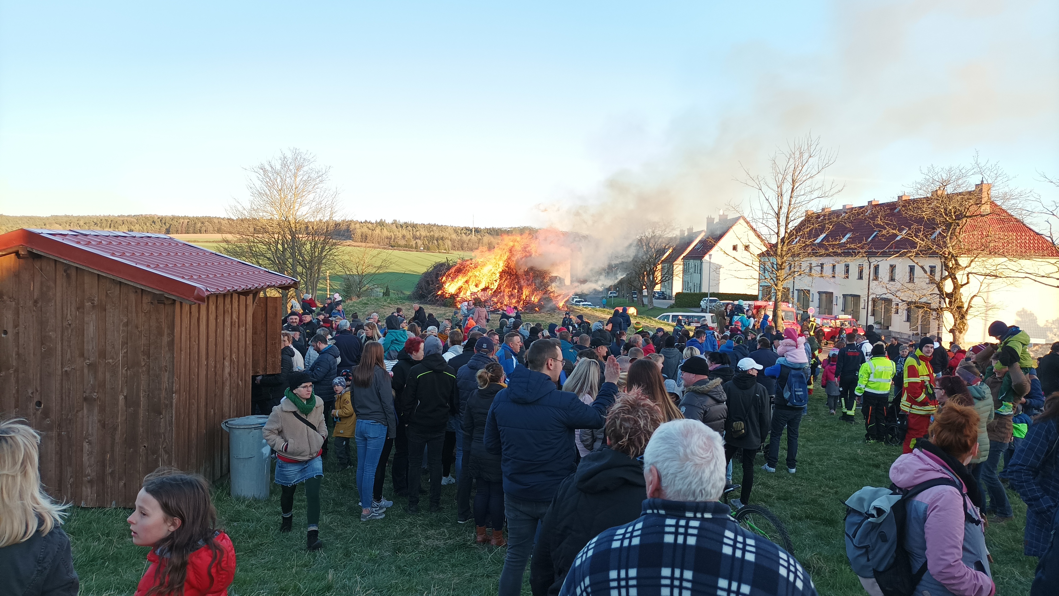 Bei perfektem Wetter setzte sich um 19 Uhr der Fackel- und Lampionumzug angeführt vom Spielmannszug am Gerätehaus in Bewegung. Ziel war die Siegeshöhe, wo tagsüber der große Haufen für das Osterfeuer aufgeschichtet wurde und unsere Vereinsmitglieder mit den notwendigen Versorgungsständen auf unsere Gäste warteten. Mit dem Eintreffen des Umzugs wurde das Feuer angezündet und brandte den ganzen Abend. Vielen Dank an alle Gäste und Helfer für die gelungene Veranstaltung.