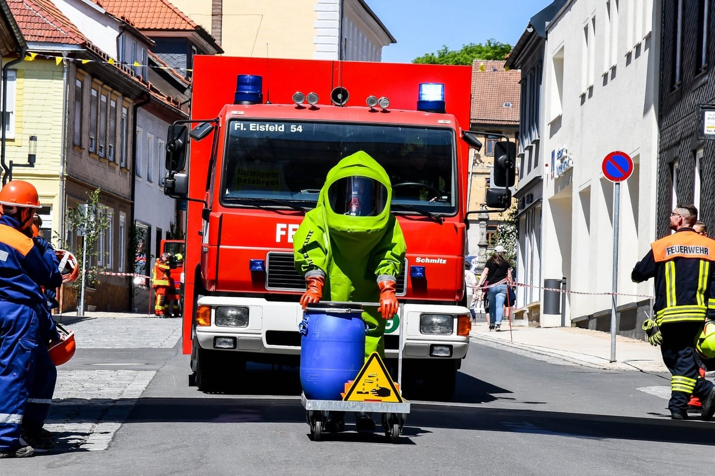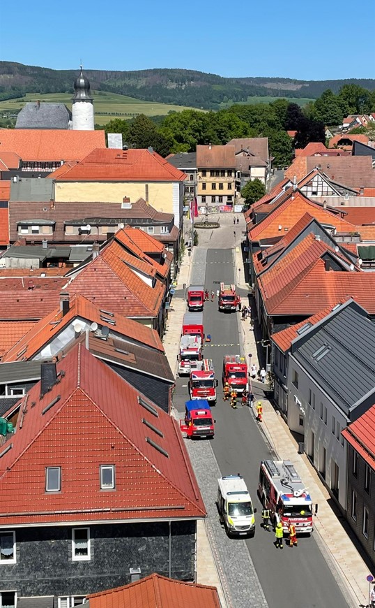 Die Kameradinnen und Kameraden der Feuerwehr Eisfeld haben sich traditionell wieder mit am Eisfelder Kuhschwanzfest beteiligt. Am Pfingst-Dienstag fand um 14 Uhr wieder unserer Hauptübung anlässlich des Eisfelder Kuhschwanzfestes statt. Zur gewohnten Zeit, aber diesmal an einem anderen Ort (Kirchplatz beim Stadttor) zeigten wir unseren Gästen welche Aufgaben die Feuerwehr Eisfeld hat und mit welcher Technik wir diese bewältigen. Unterstützt wurden wir dabei natürlich auch von unserer Jugendfeuerwehr.