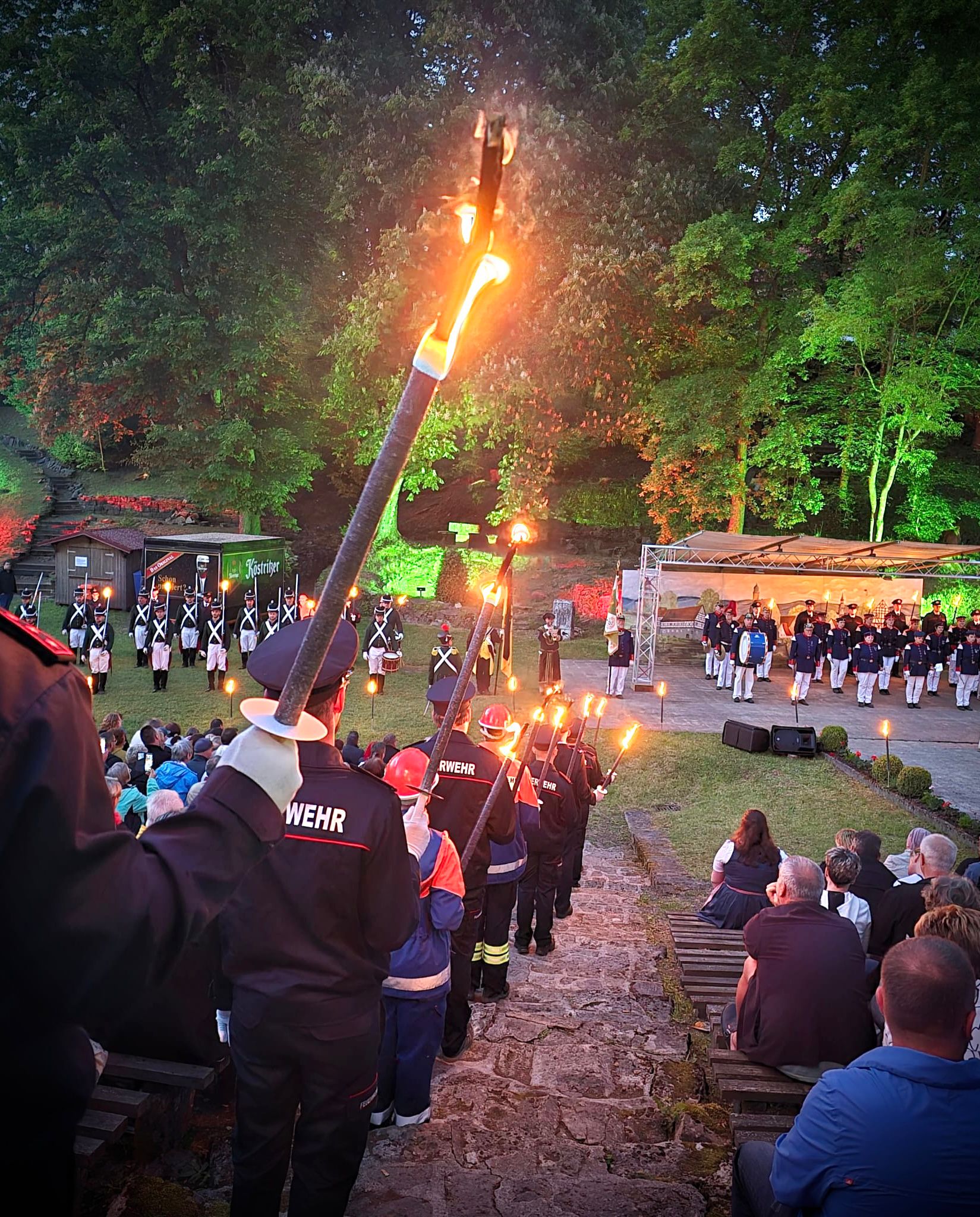 Zum diesjährigen Kuhschwanzfest wurde der langjährige Stadtkommandant Alfred Lorz mit einem feierlichen Zapfenstreich verabschiedet. Hier waren federführend unser Feuerwehr Spielmannzug für den musikalischen Teil und Dramaturgie, aber auch Kammeradinnen und Kamerdan der aktiven Wehren und der Jugendfeuerwehr als Fackelträger beteiligt. Ein großes Dankeschön an alle Beteiligte, die diesen Abend nicht nur für Alfred Lorz zu einem unvergesslichen gemacht haben. Auch hunderte Zuschauer waren begeistert.