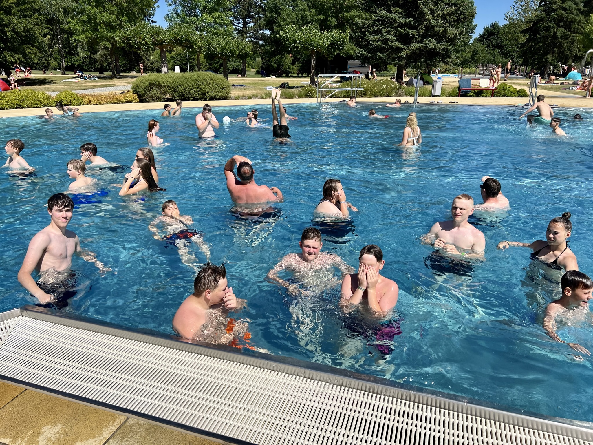 Da es der Wettergott etwas sehr gut mit uns meinte, wurde das Wetter heißer und heißer, also ab ins nächste Schwimmbad. Den Mittwoch erlebten wir gemütlich und kühl im Freibad in Dingelstädt, welches wir als geübte Freibadbesucher, am besten von allen bewerteten. Den Abend verbrachten wir wieder auf Schloss Martinfeld und wurden hierbei zufällig Augenzeugen einer Übung der Bundeswehr. Wir konnten spektakuläre Flugmanöver von Hubschraubern im Tiefflug beobachten und das ganz ohne Eintritt hierfür zu zahlen.