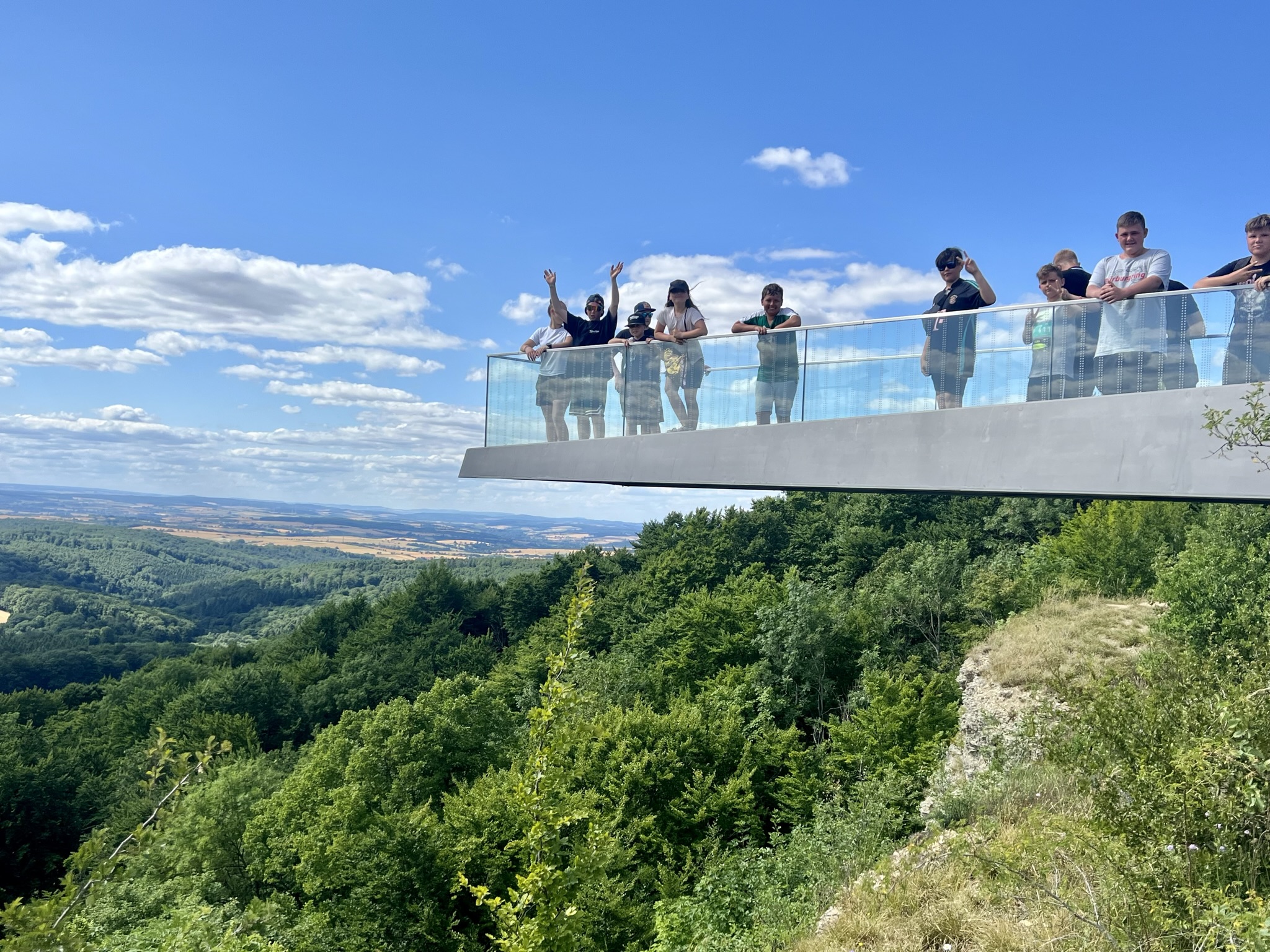 Am Donnerstag besuchten wir den alternativen Bärenpark in Worbis. Vom kleinen Kaninchen, über den furchteinflößenden Wolf, bis zum mächtigen Braunbären, hier finden Tiere, denen es in ihrer Vergangenheit nicht besonders gut erging, ein neues zu Hause und können sich von den Strapazen, die sie leider erleiden mussten, erholen. Auch der mehrfach in der Nähe von Bockstadt gesichtete Luchs „Baron“ wurde hier aufgepäppelt und soll demnächst wieder seine Freiheit genießen können. Ob er den Weg zurück nach Bockstadt noch kennt? Am Nachmittag wanderten wir dann auf den Sonnenstein. Als Belohnung erwartete uns ein spektakulärer Skywalk, bei dem alle Mut bewiesen und sich auf den Boden aus Glas wagten.