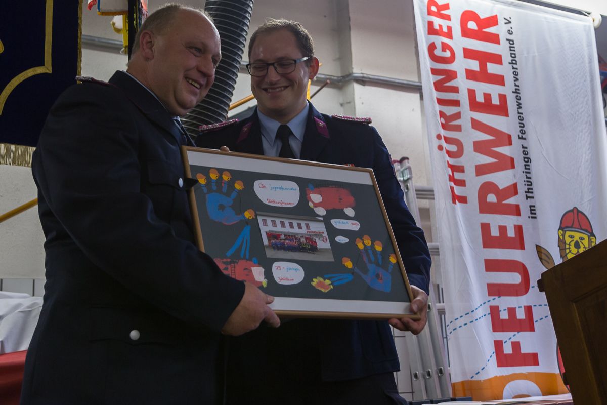 Doch auch Unternehmungen und Freizeitaktivitäten spielen eine große Rolle in der Jugendfeuerwehr. Neben Zeltlager und 24-Stunden-Berufsfeuerwehrtag konnten in den letzten Jahren ebenso Fahrten und Besichtigungen zur Flughafenfeuerwehr, der Leitstelle sowie Berufsfeuerwehren in Thüringen aber auch anderen Bundesländern durchgeführt werden. Neben Vertretern anderer Feuerwehren und Verbänden gratulierte musikalisch auch der Spielmannszug der Eisfelder Feuerwehr und man ließ den gemeinsamen Abend im Gerätehaus ausklingen.